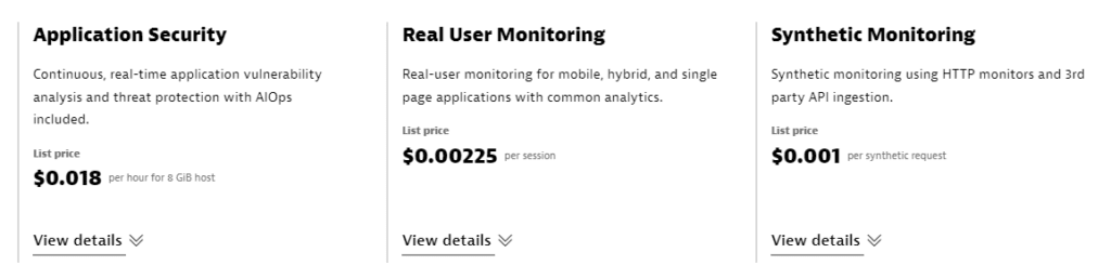 Dynatrace offers custom pricing based on usage, typically tailored to large businesses. Real user monitoring costs $0.00225 per session.