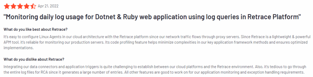 Retrace is suitable for development teams and small to medium businesses needing a combined solution for user monitoring and performance tracking.