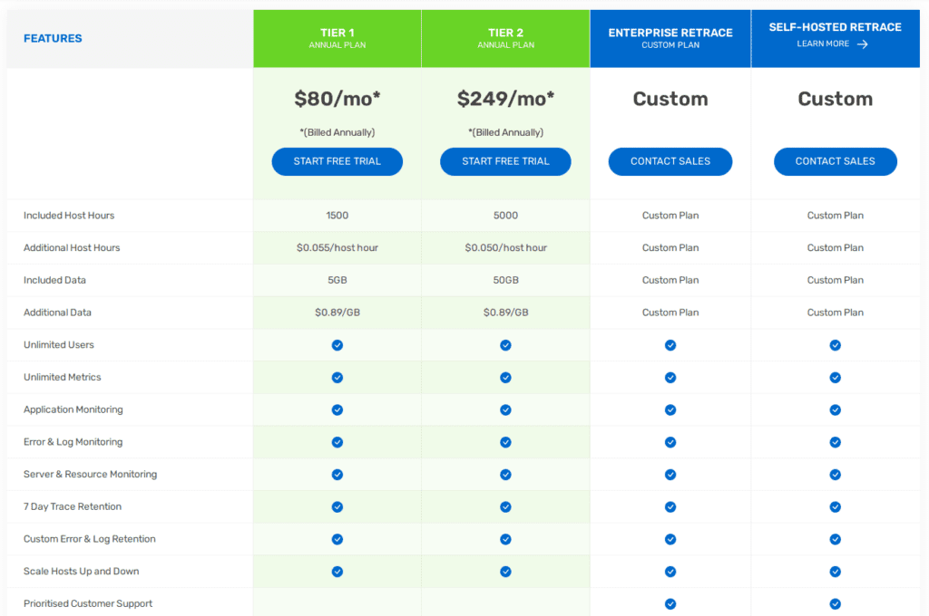 Retrace provides tiered pricing based on the number of applications and servers you want to monitor. It's flexible enough for small businesses while offering features that scale with larger teams. Subscription-based pricing ensures you pay for only what you need.