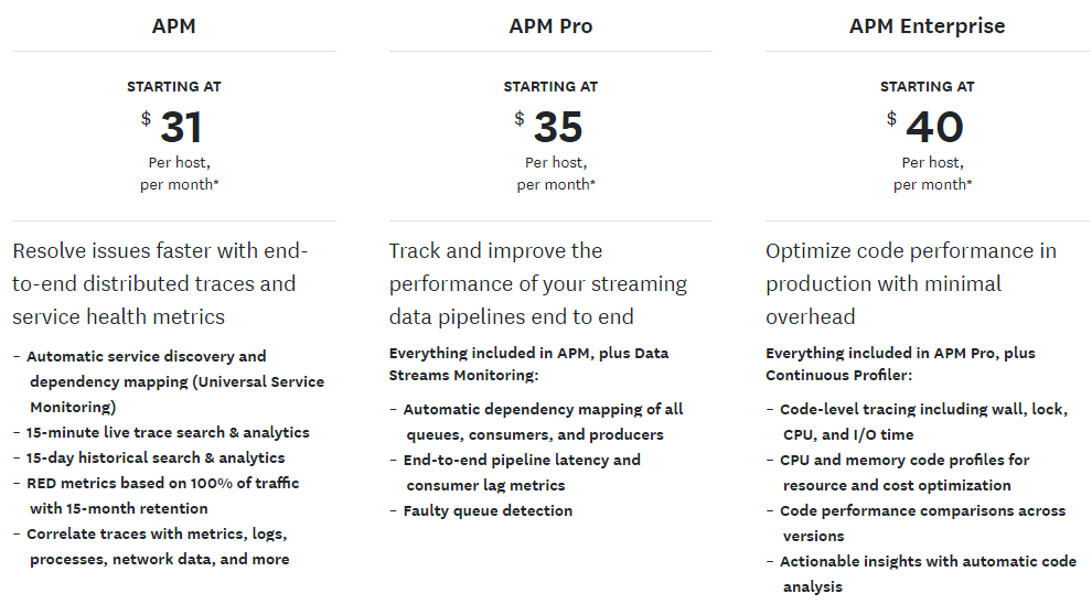 Datadog RUM follows a usage-based pricing model, which you can customize based on your needs. Their basic APM plan starts at $31 per host per month for core features like live trace search and analytics, universal service monitoring, and performance metrics.