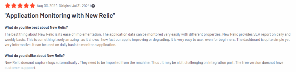New Relic has an average user rating of 4.3 out of 5 stars based on 450 reviews on G2.