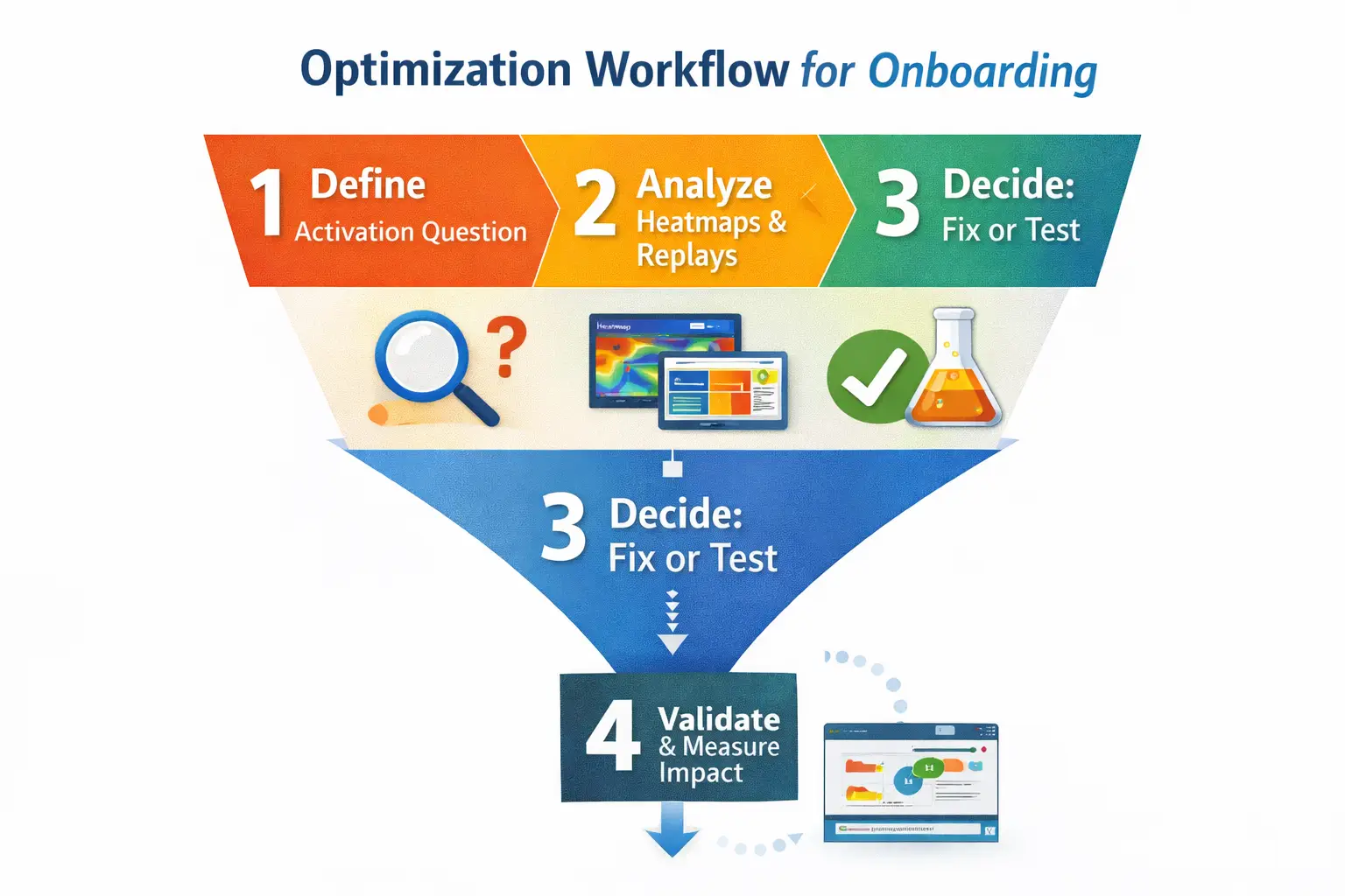 A click heatmap aggregates where users click or tap. For activation work, it is strongest when you suspect users are trying to progress but failing, hesitating, or choosing the wrong path.