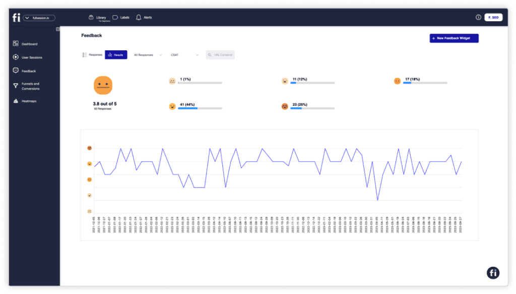 FullSession can categorize feedback and summarize the results. You can see how many users are happy with the experience, neutral, or unhappy. You can click on any response type to see all submissions from your feedback channels.