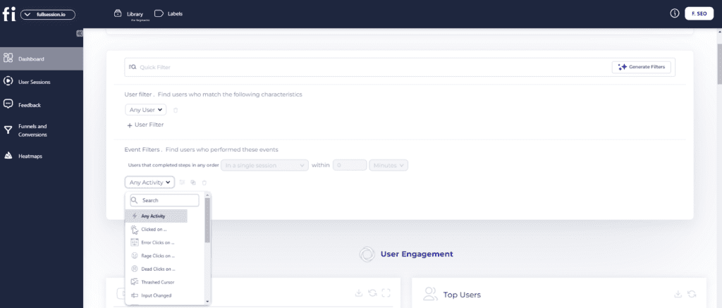 Our team has also added advanced user and event filtering options to complement session recordings and make navigation more accessible and more convenient. You can segment sessions by any activity you’re interested in, such as: