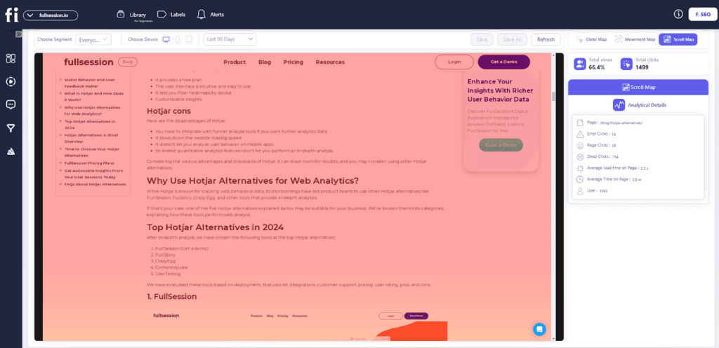 FullSession offers scroll maps that show your website visitors’ scrolling activity.