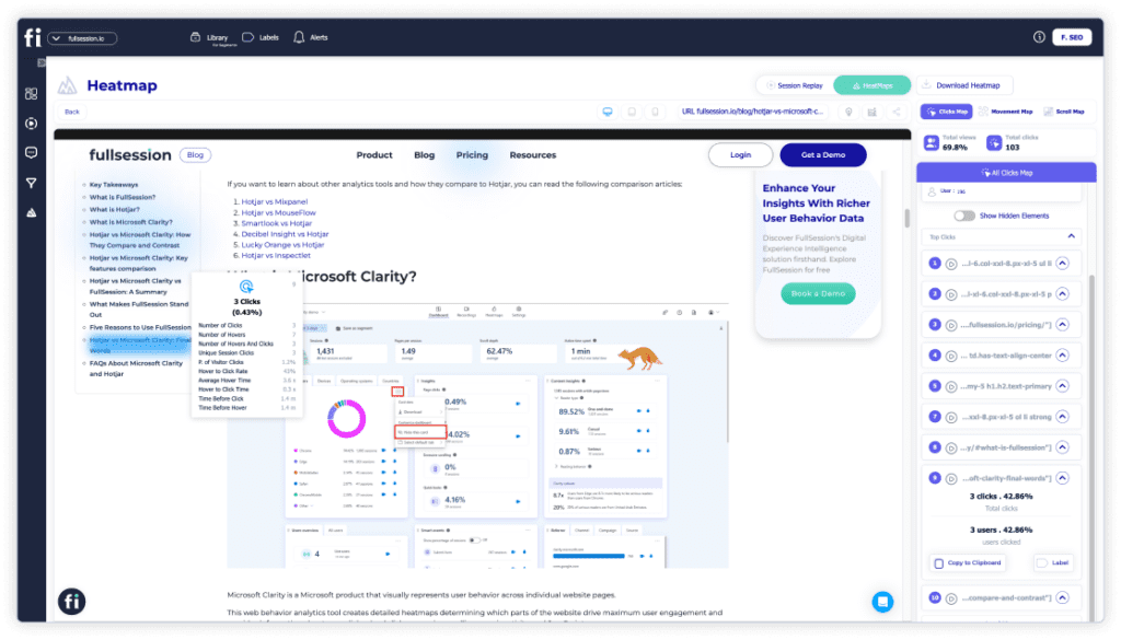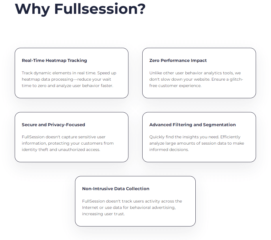 What sets FullSession apart from competitors is our heatmap feature, delivering real-time insights, without any waiting time for data processing.