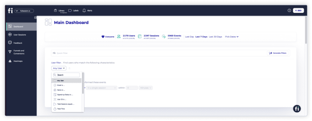 Now, let’s explain our web analytics software, FullSession, which also helps you track website visitor behavior and monitor your website performance.