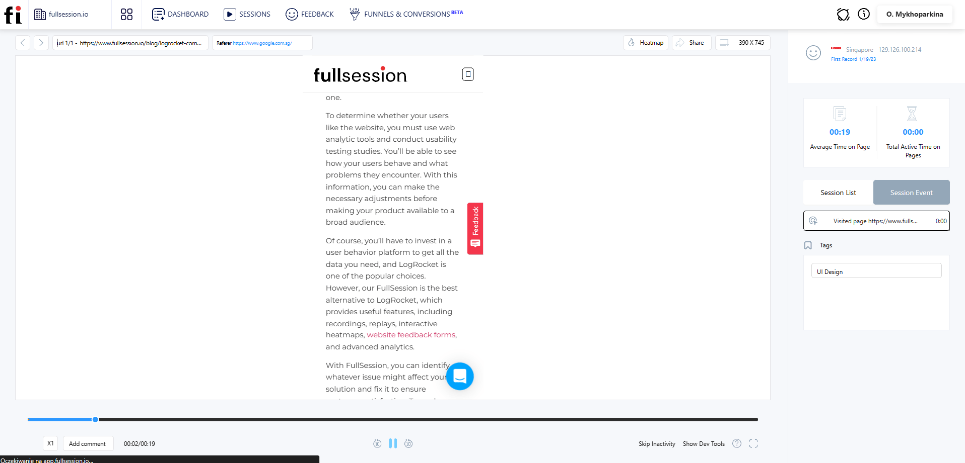FullSession is our product analytics platform that provides you with product metrics you can use to understand how your website, web app, or landing performs and how users behave while browsing your site.