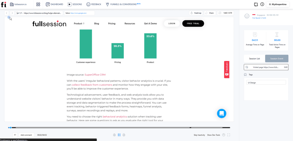 FullSession is a behavior analytics platform you can use to create a customer-centric marketing strategy by monitoring what issues your users are experiencing on your website, web app, or landing page.