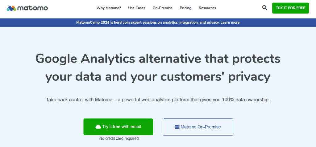 Matomo emphasizes privacy and data ownership, so it’s a good choice for businesses prioritizing GDPR compliance and user privacy.