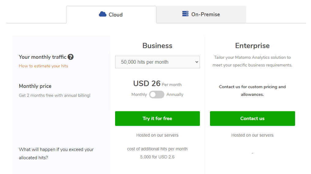 Matomo offers a free open-source version for businesses that want to self-host. For those who prefer a cloud solution, paid plans start at $26 per month and scale based on traffic and features.