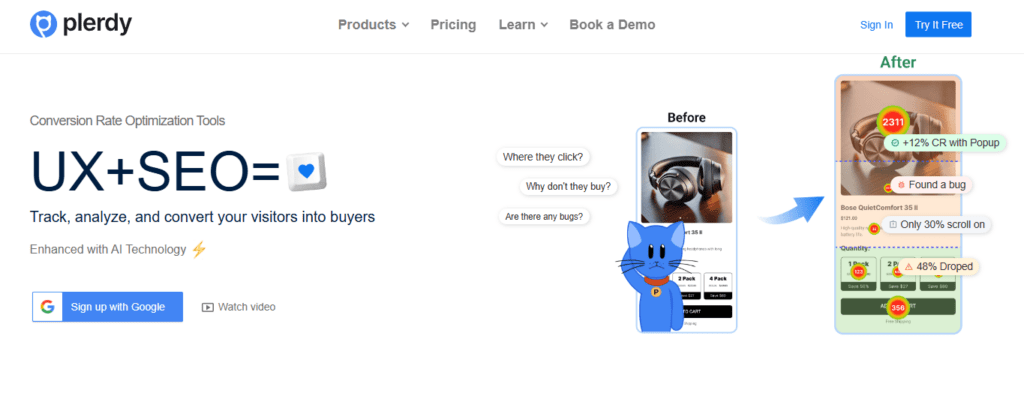 Plerdy is an all-in-one UX and SEO tool that helps you analyze user behavior and improve website performance.