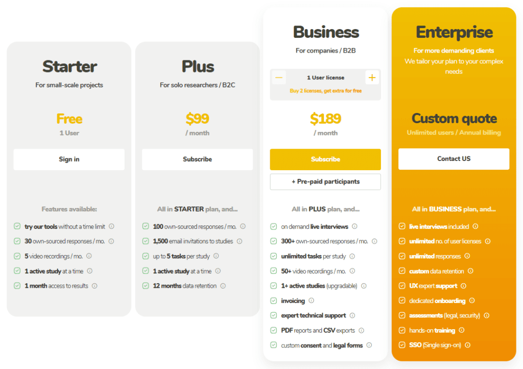 UXtweak has a free plan with limited features. Its paid plans start at $99/month.