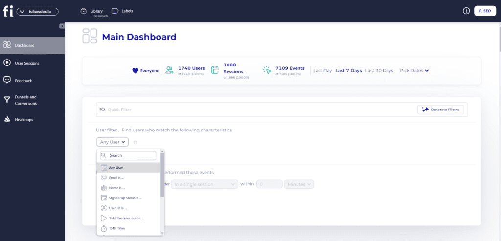 Our advanced segmentation feature allows you to build specific user segments to quickly identify essential user actions and session recordings of significant interest.