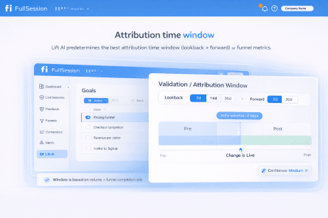 FullSession Lift AI turns real user sessions and behavior into a ranked list of opportunities tied to goals like checkout completion, revenue per visitor, or signup conversion.