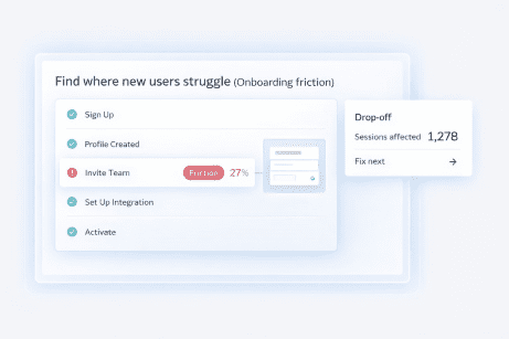 Combine replays, heatmaps, and feedback to pinpoint onboarding friction and improve activation with confidence.